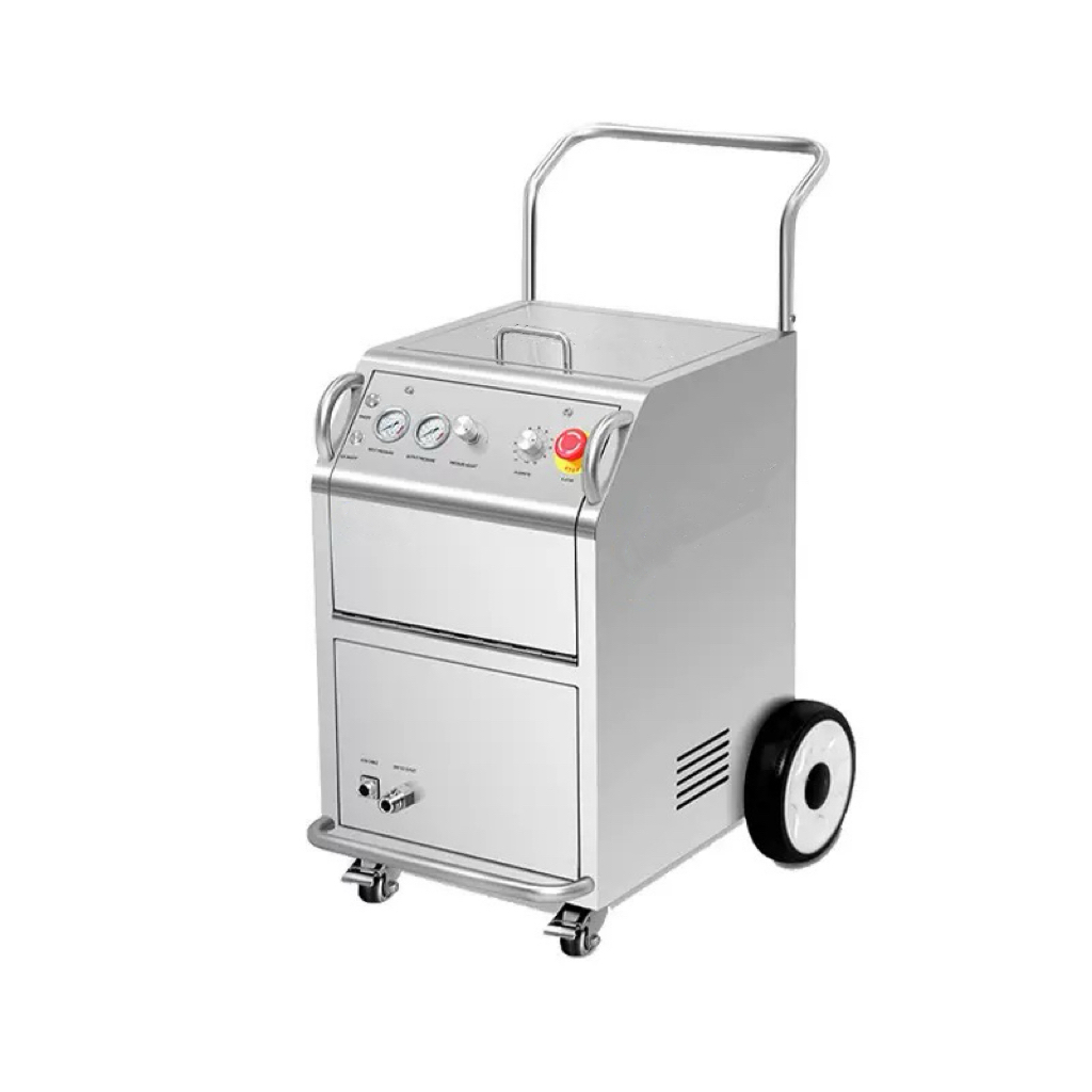 High-efficiency dry ice blasting machine made from durable SUS304 stainless steel. Adjustable settings, ultra-low temperature operation, and advanced air filtration ensure precise cleaning. Includes versatile nozzles for tailored applications. Eco-friendly and ideal for industries like automotive, electronics, printing, food processing, manufacturing, pharmaceuticals and etc.